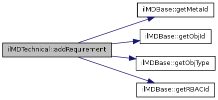 Here is the call graph for this function:| & ilMDTechnical::addRequirement | ( | ) |