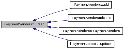 Referenced by add(), delete(), ilPaymentVendors(), and update().
