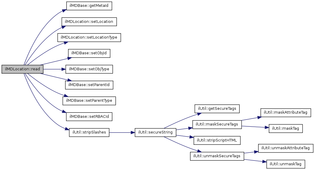 Here is the call graph for this function:| ilMDLocation::read | ( | ) |