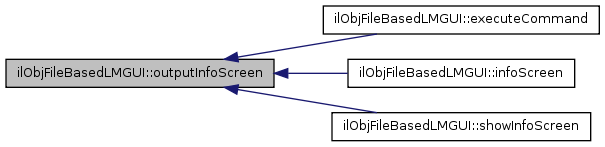 Here is the caller graph for this function:| ilObjFileBasedLMGUI::showInfoScreen | ( | ) |