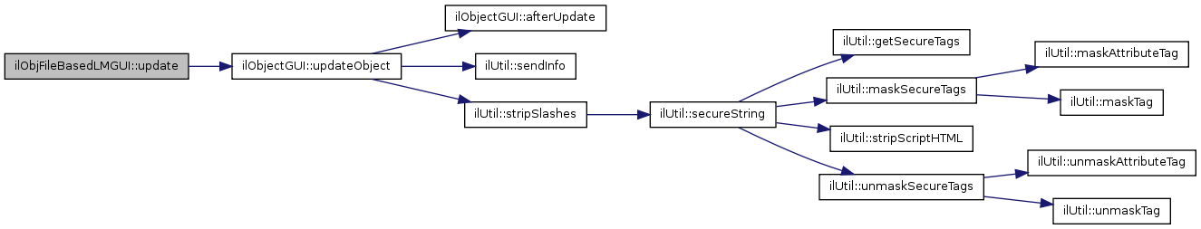 Here is the call graph for this function:| ilObjFileBasedLMGUI::update | ( | ) |