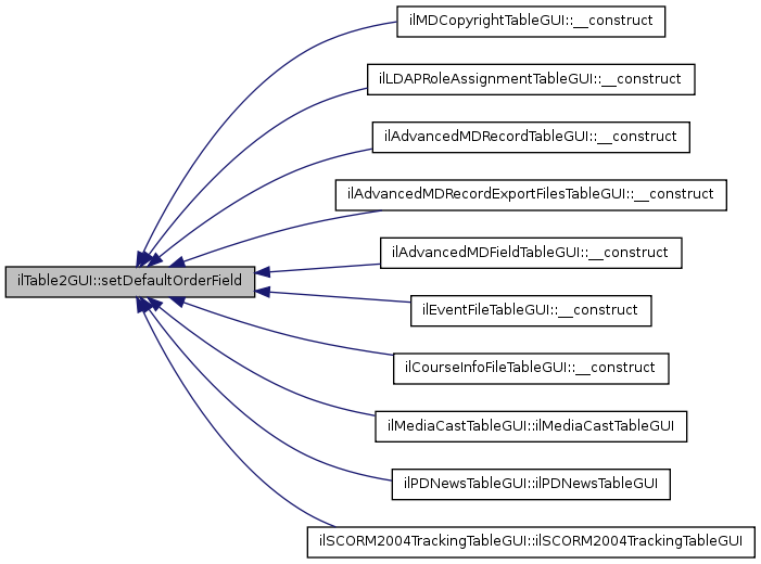Here is the caller graph for this function:| ilTable2GUI::setDefaultOrderField | ( | $ | a_defaultorderfield | ) |