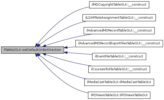 Here is the caller graph for this function:| ilTable2GUI::setDefaultOrderDirection | ( | $ | a_defaultorderdirection | ) |