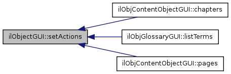 Here is the caller graph for this function:| ilObjectGUI::$actions |