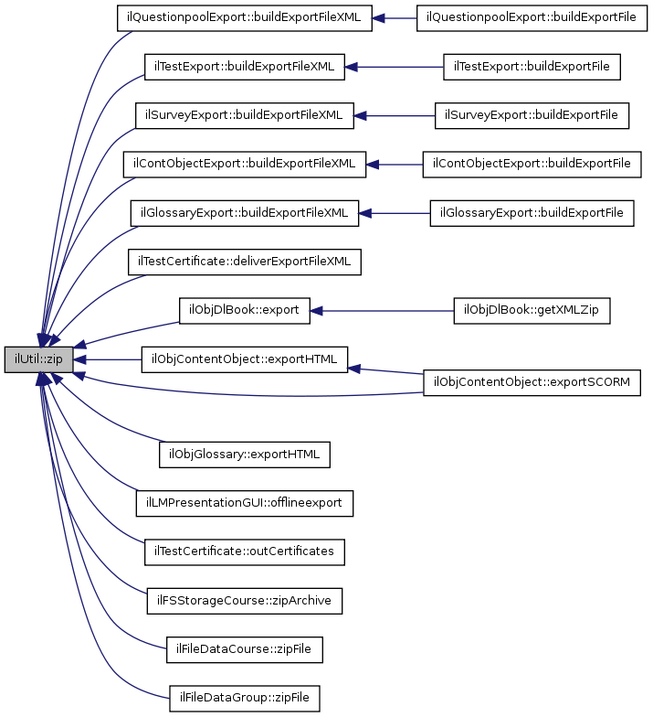 Referenced by ilQuestionpoolExport::buildExportFileXML(), ilTestExport::buildExportFileXML(), ilSurveyExport::buildExportFileXML(), ilContObjectExport::buildExportFileXML(), ilGlossaryExport::buildExportFileXML(), ilTestCertificate::deliverExportFileXML(), ilObjDlBook::export(), ilObjContentObject::exportHTML(), ilObjGlossary::exportHTML(), ilObjContentObject::exportSCORM(), ilLMPresentationGUI::offlineexport(), ilTestCertificate::outCertificates(), ilFSStorageCourse::zipArchive(), ilFileDataCourse::zipFile(), and ilFileDataGroup::zipFile().