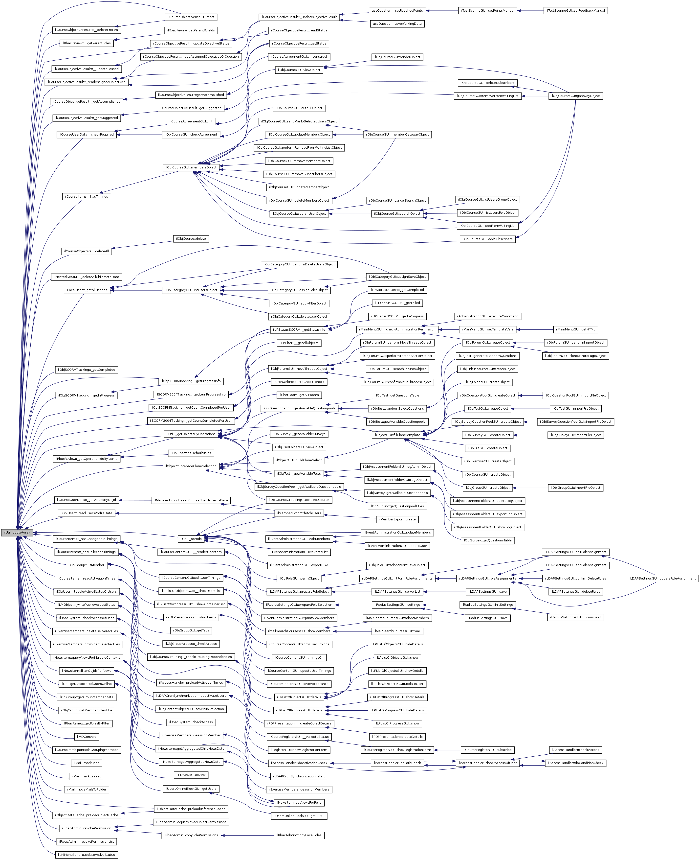 Referenced by ilObjiLincCourse::_isActivated(), ilLMObject::_isPagePublic(), ilLMObject::_lookupActive(), ilObjSAHSLearningModuleAccess::_lookupOnline(), ilObjSAHSLearningModule::_lookupOnline(), ilObjContentObjectAccess::_lookupOnline(), ilObjContentObject::_lookupOnline(), ilObjFileBasedLMAccess::_lookupOnline(), ilObjFileBasedLM::_lookupOnline(), ilObjGlossaryAccess::_lookupOnline(), ilObjGlossary::_lookupOnline(), ilContObjParser::handlerBeginTag(), ilRbacReview::isProtected(), ilObjContentObjectGUI::properties(), ilObjSAHSLearningModule::read(), ilLMObject::read(), ilObjFileBasedLM::read(), ilObjGlossary::read(), ilObjiLincCourse::read(), ilObjContentObject::readProperties(), ilObjSCORMLearningModuleGUI::saveProperties(), ilObjSCORM2004LearningModuleGUI::saveProperties(), ilObjContentObjectGUI::saveProperties(), ilObjFileBasedLMGUI::saveProperties(), and ilObjGlossaryGUI::saveProperties().