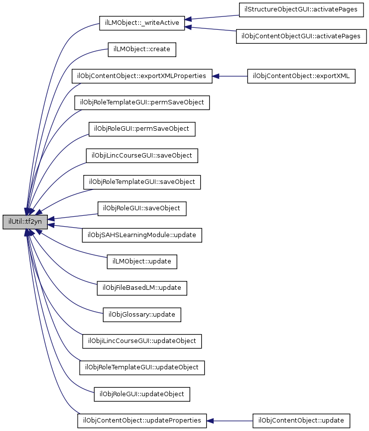Here is the caller graph for this function:| ilUtil::yn2tf | ( | $ | a_yn | ) |