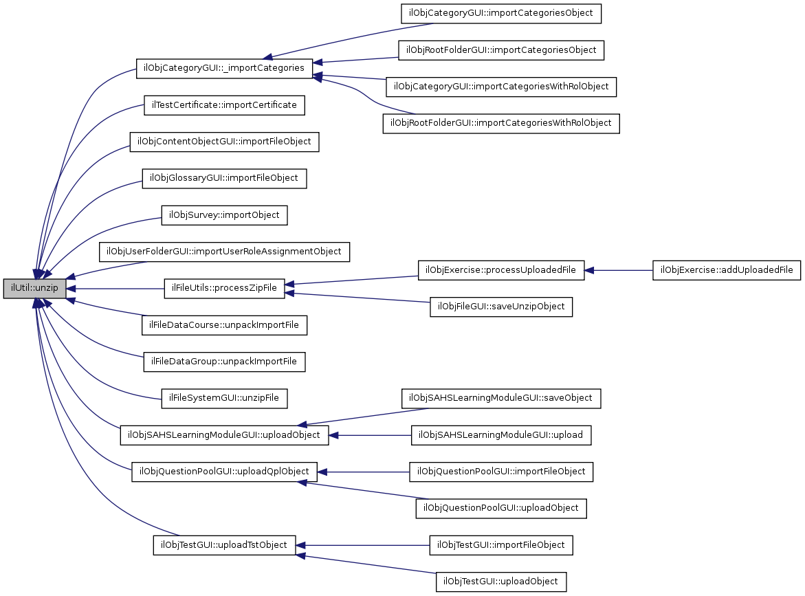 Referenced by ilObjCategoryGUI::_importCategories(), ilTestCertificate::importCertificate(), ilObjContentObjectGUI::importFileObject(), ilObjGlossaryGUI::importFileObject(), ilObjSurvey::importObject(), ilObjUserFolderGUI::importUserRoleAssignmentObject(), ilFileUtils::processZipFile(), ilFileDataCourse::unpackImportFile(), ilFileDataGroup::unpackImportFile(), ilFileSystemGUI::unzipFile(), ilObjSAHSLearningModuleGUI::uploadObject(), ilObjQuestionPoolGUI::uploadQplObject(), and ilObjTestGUI::uploadTstObject().
