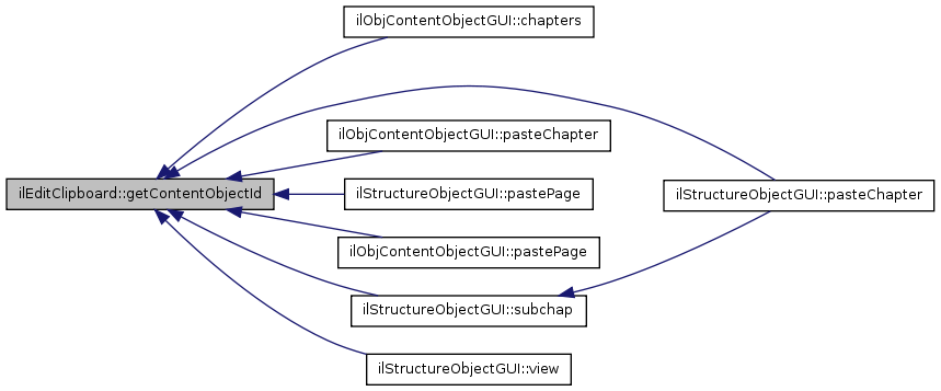 Here is the caller graph for this function:| ilEditClipboard::getContentObjectId | ( | ) |