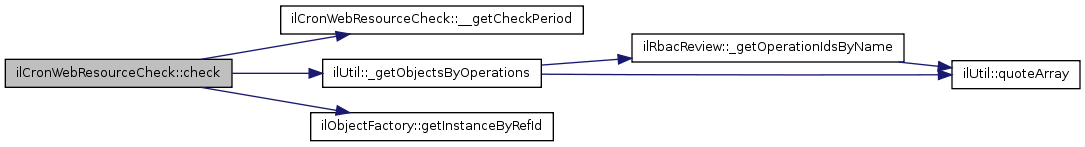 Here is the caller graph for this function:| ilCronWebResourceCheck::check | ( | ) |