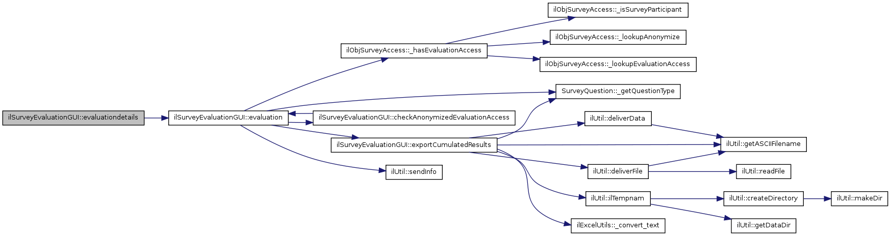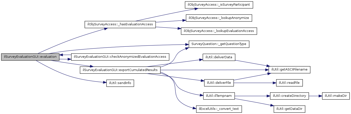 Here is the call graph for this function:| ilSurveyEvaluationGUI::evaluation | ( | $ | details = 0 |