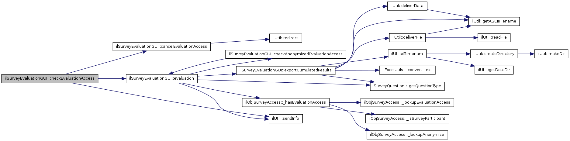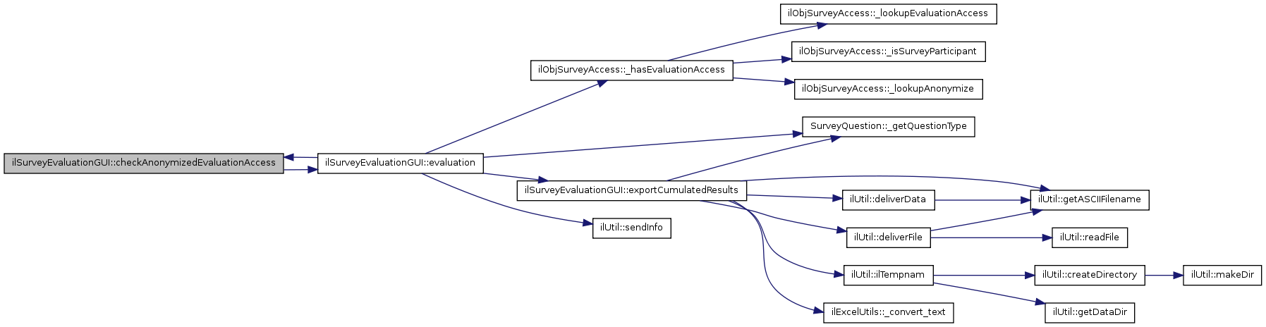 Here is the caller graph for this function:| ilSurveyEvaluationGUI::checkAnonymizedEvaluationAccess | ( | ) |