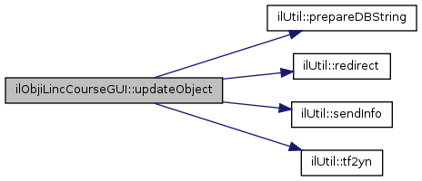 Here is the call graph for this function:| ilObjiLincCourseGUI::updateObject | ( | ) |