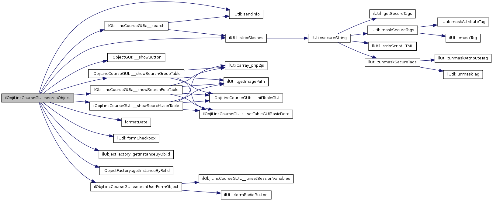 Here is the caller graph for this function:| ilObjiLincCourseGUI::__search | ( | $ | a_search_string, | |