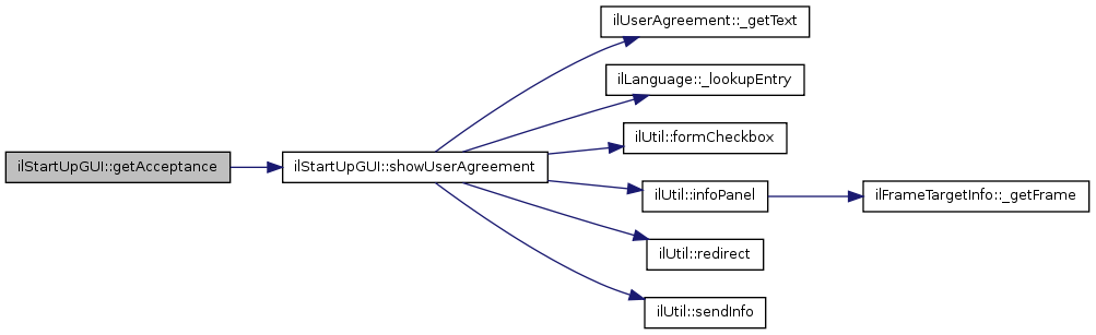 Here is the caller graph for this function:| ilStartUpGUI::getAcceptance | ( | ) |