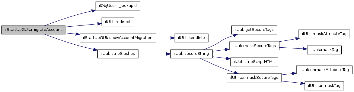 Here is the call graph for this function:| ilStartUpGUI::migrateAccount | ( | ) |