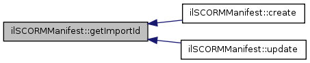 Here is the call graph for this function:| ilSCORMManifest::getImportId | ( | ) |