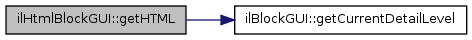 Here is the caller graph for this function:| ilHtmlBlockGUI::getHTML | ( | ) |