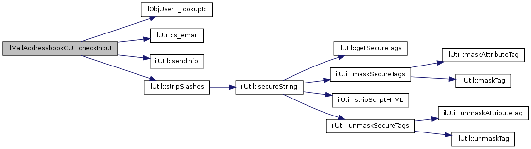 Here is the call graph for this function:| ilMailAddressbookGUI::checkInput | ( | $ | addr_id = 0 |