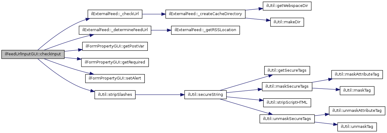 Here is the call graph for this function:| ilFeedUrlInputGUI::checkInput | ( | ) |