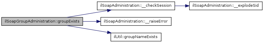 Here is the call graph for this function:| ilSoapGroupAdministration::groupExists | ( | $ | sid, | |