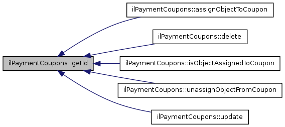 Here is the caller graph for this function:| ilPaymentCoupons::setId | ( | $ | a_id | ) |