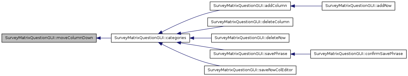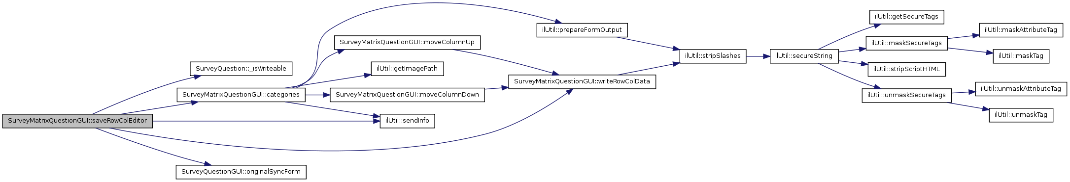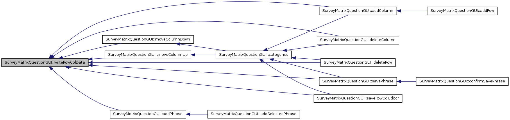 Here is the call graph for this function:| SurveyMatrixQuestionGUI::writeRowColData | ( | $ | save = FALSE |