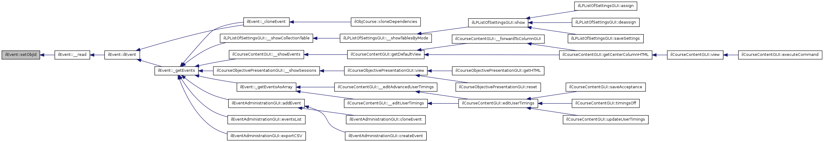 Here is the caller graph for this function:| ilEvent::setObjId | ( | $ | a_obj_id | ) |