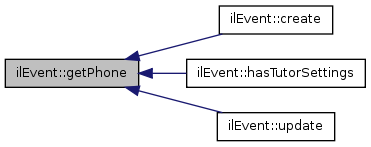 Here is the caller graph for this function:| ilEvent::getPhone | ( | ) |