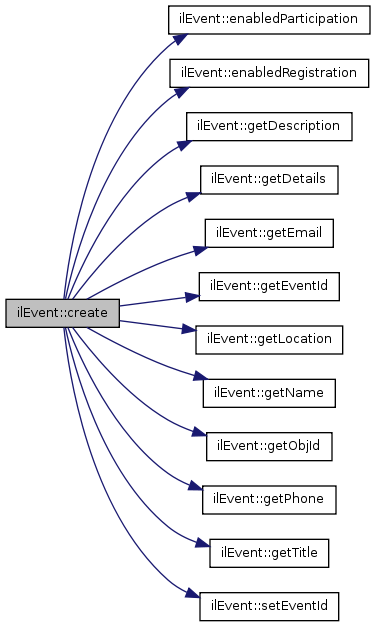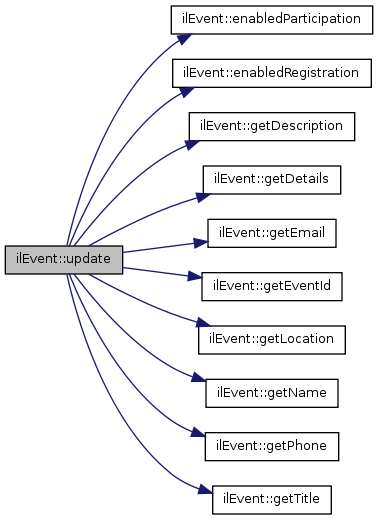 References $ilDB, enabledParticipation(), enabledRegistration(), getDescription(), getDetails(), getEmail(), getEventId(), getLocation(), getName(), getPhone(), and getTitle().