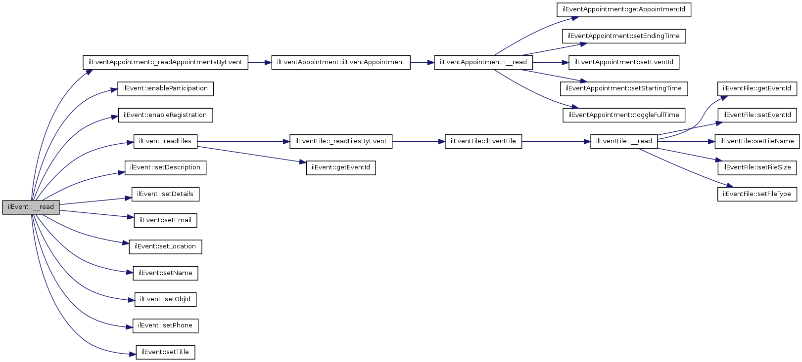 References $ilDB, $res, ilEventAppointment::_readAppointmentsByEvent(), enableParticipation(), enableRegistration(), readFiles(), setDescription(), setDetails(), setEmail(), setLocation(), setName(), setObjId(), setPhone(), and setTitle().
