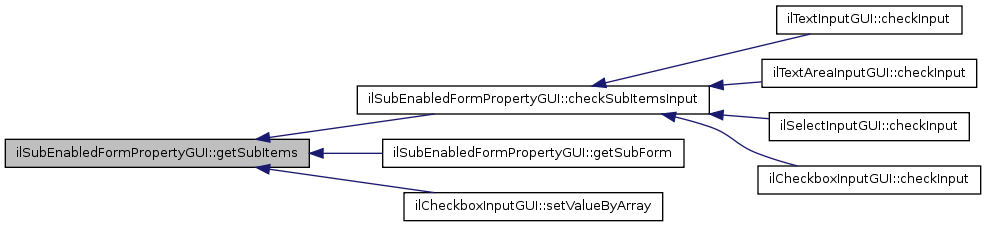 Here is the caller graph for this function:| ilSubEnabledFormPropertyGUI::getSubItems | ( | ) |