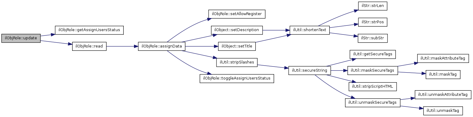 Here is the caller graph for this function:| ilObjRole::update | ( | ) |