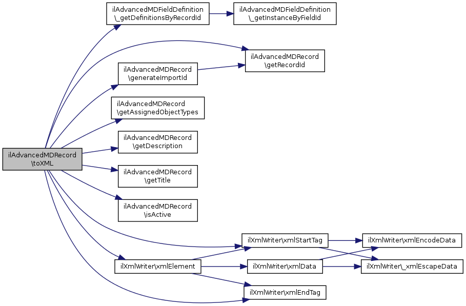 References ilAdvancedMDFieldDefinition\_getDefinitionsByRecordId(), generateImportId(), getAssignedObjectTypes(), getDescription(), getRecordId(), getTitle(), isActive(), ilXmlWriter\xmlElement(), ilXmlWriter\xmlEndTag(), and ilXmlWriter\xmlStartTag().