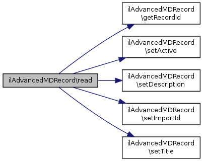 References $ilDB, $query, $res, $row, DB_FETCHMODE_OBJECT, getRecordId(), setActive(), setDescription(), setImportId(), and setTitle().