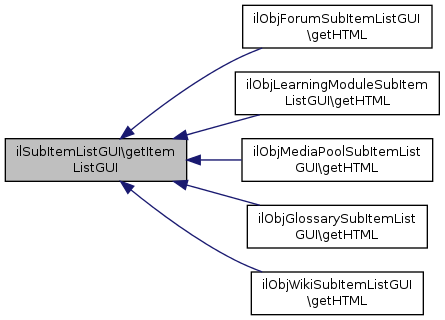 Referenced by ilObjExerciseSubItemListGUI\getHTML(), ilObjForumSubItemListGUI\getHTML(), ilObjLearningModuleSubItemListGUI\getHTML(), ilObjMediaPoolSubItemListGUI\getHTML(), ilObjGlossarySubItemListGUI\getHTML(), ilObjWikiSubItemListGUI\getHTML(), and ilObjLinkResourceSubItemListGUI\getHTML().