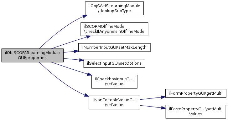 ilObjSCORMLearningModuleGUI::properties | ( | ) |