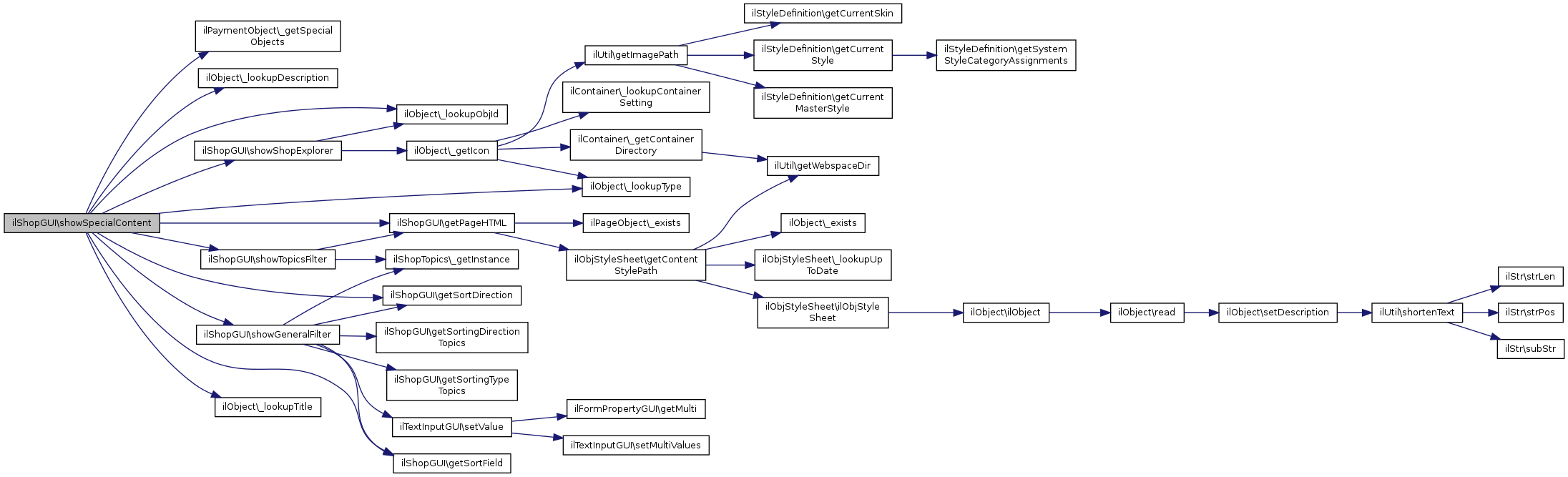 References $ilUser, $result, $type, ilPaymentObject\_getSpecialObjects(), ilObject\_lookupDescription(), ilObject\_lookupObjId(), ilObject\_lookupTitle(), ilObject\_lookupType(), getPageHTML(), getSortDirection(), getSortField(), showGeneralFilter(), showShopExplorer(), and showTopicsFilter().