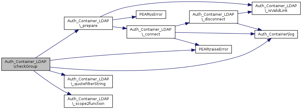 References _disconnect(), _getBaseDN(), _prepare(), _quoteFilterString(), _scope2function(), AUTH_LOG_DEBUG, checkGroup(), ilLDAPServer\DEFAULT_NETWORK_TIMEOUT, Auth_Container\log(), and PEAR\raiseError().