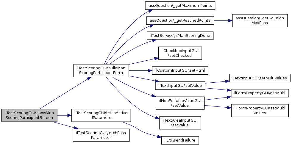 References $ilCtrl, ilTestServiceGUI\$lng, $pass, ilTestServiceGUI\$tpl, assQuestion\_getMaximumPoints(), ilObjTestAccess\_getParticipantId(), ilObjAdvancedEditing\_getUsedHTMLTagsAsString(), assQuestion\_setReachedPoints(), ilLPStatusWrapper\_updateStatus(), buildManScoringParticipantForm(), fetchActiveIdParameter(), fetchPassParameter(), ilUtil\sendFailure(), ilUtil\sendSuccess(), ilMailNotification\setAdditionalInformation(), ilTestService\setManScoringDone(), showManScoringParticipantScreen(), and ilUtil\stripSlashes().