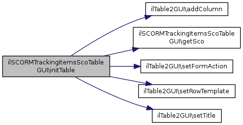 References $ilCtrl, ilTable2GUI\addColumn(), getSco(), ilTable2GUI\setFormAction(), ilTable2GUI\setRowTemplate(), and ilTable2GUI\setTitle().