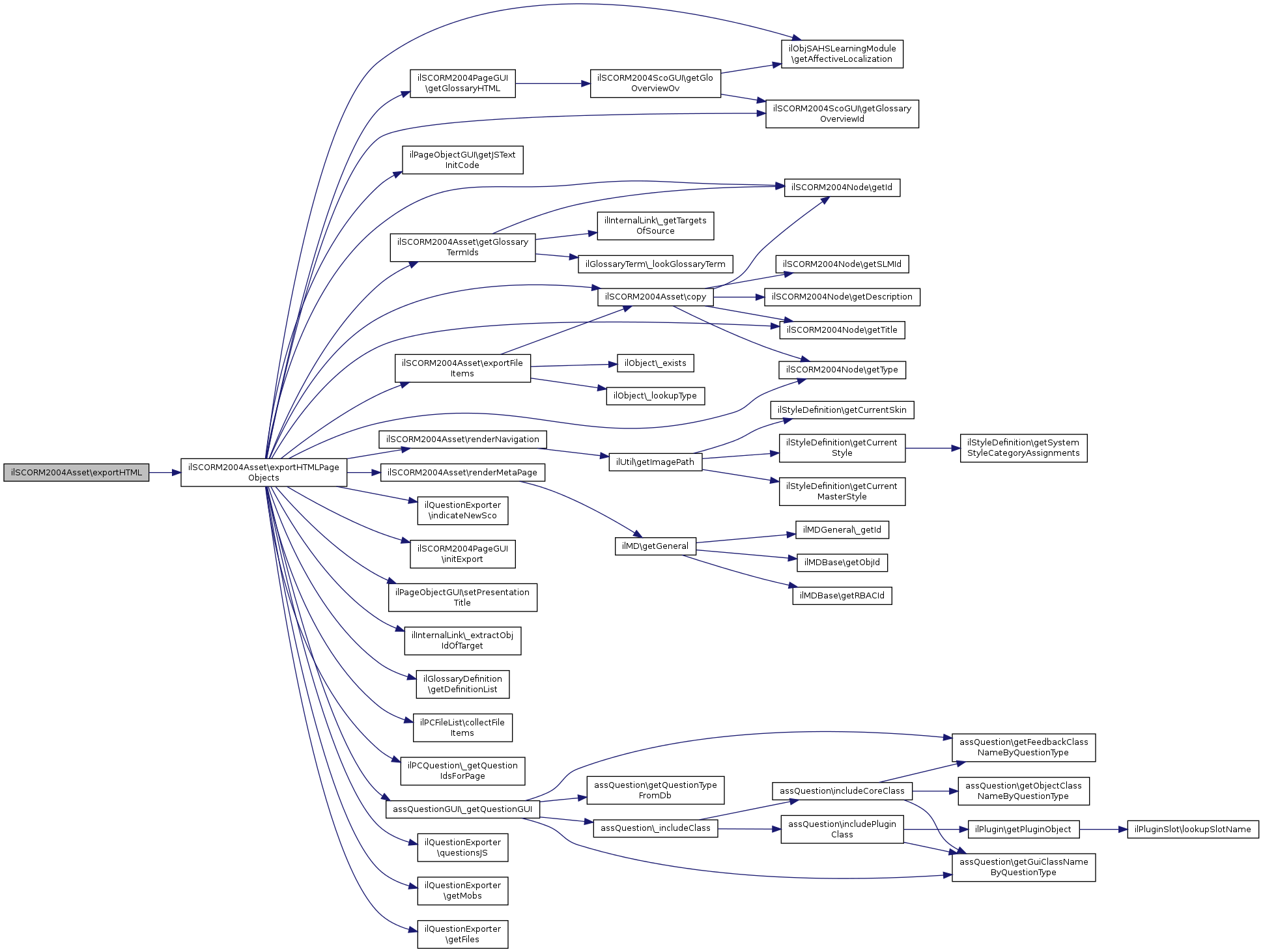 References $ilBench, $ilCtrl, $ilLog, $lng, $tpl, ilInternalLink\_extractObjIdOfTarget(), assQuestionGUI\_getQuestionGUI(), ilPCQuestion\_getQuestionIdsForPage(), ilPCFileList\collectFileItems(), copy(), exportFileItems(), ilObjSAHSLearningModule\getAffectiveLocalization(), ilGlossaryDefinition\getDefinitionList(), ilQuestionExporter\getFiles(), ilSCORM2004PageGUI\getGlossaryHTML(), ilSCORM2004ScoGUI\getGlossaryOverviewId(), getGlossaryTermIds(), ilSCORM2004Node\getId(), ilPageObjectGUI\getJSTextInitCode(), ilQuestionExporter\getMobs(), ilSCORM2004Node\getTitle(), ilSCORM2004Node\getType(), IL_PAGE_OFFLINE, ilQuestionExporter\indicateNewSco(), ilSCORM2004PageGUI\initExport(), ilQuestionExporter\questionsJS(), renderMetaPage(), renderNavigation(), and ilPageObjectGUI\setPresentationTitle().