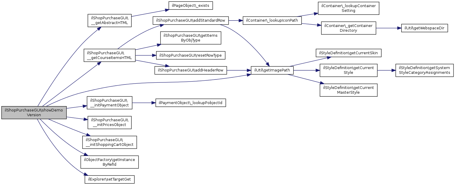 References __getAbstractHTML(), __getCourseItemsHTML(), __initPaymentObject(), __initPricesObject(), __initShoppingCartObject(), ilUtil\getImagePath(), ilObjectFactory\getInstanceByRefId(), and ilExplorer\setTargetGet().