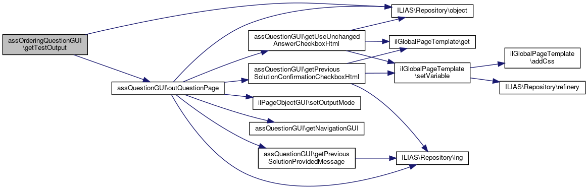 Here is the caller graph for this function:| assOrderingQuestionGUI::getTestOutput | ( | int | $active_id, |