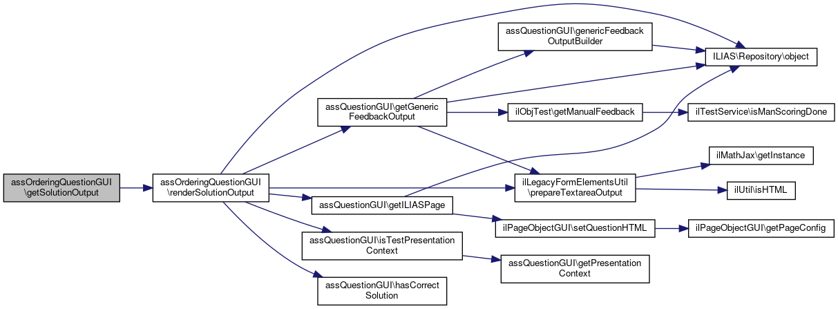 References ilAssNestedOrderingElementsInputGUI\CONTEXT_CORRECT_SOLUTION_PRESENTATION, ilAssNestedOrderingElementsInputGUI\CONTEXT_USER_SOLUTION_PRESENTATION, ilAssQuestionFeedback\CSS_CLASS_FEEDBACK_CORRECT, ilAssQuestionFeedback\CSS_CLASS_FEEDBACK_WRONG, assQuestionGUI\getGenericFeedbackOutput(), assQuestionGUI\getILIASPage(), assQuestionGUI\hasCorrectSolution(), assQuestionGUI\isTestPresentationContext(), ILIAS\Repository\object(), and ilLegacyFormElementsUtil\prepareTextareaOutput().