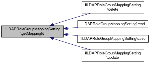 Here is the caller graph for this function:| ilLDAPRoleGroupMappingSetting::getMappingId | ( | ) |