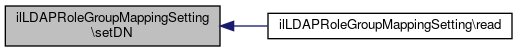 Here is the call graph for this function:| ilLDAPRoleGroupMappingSetting::getDN | ( | ) |