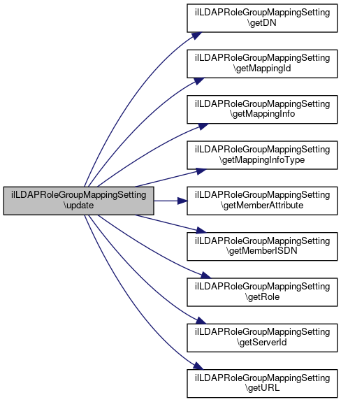 Here is the caller graph for this function:| ilLDAPRoleGroupMappingSetting::update | ( | ) |