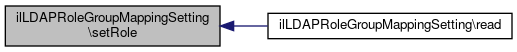Here is the caller graph for this function:| ilLDAPRoleGroupMappingSetting::getRole | ( | ) |