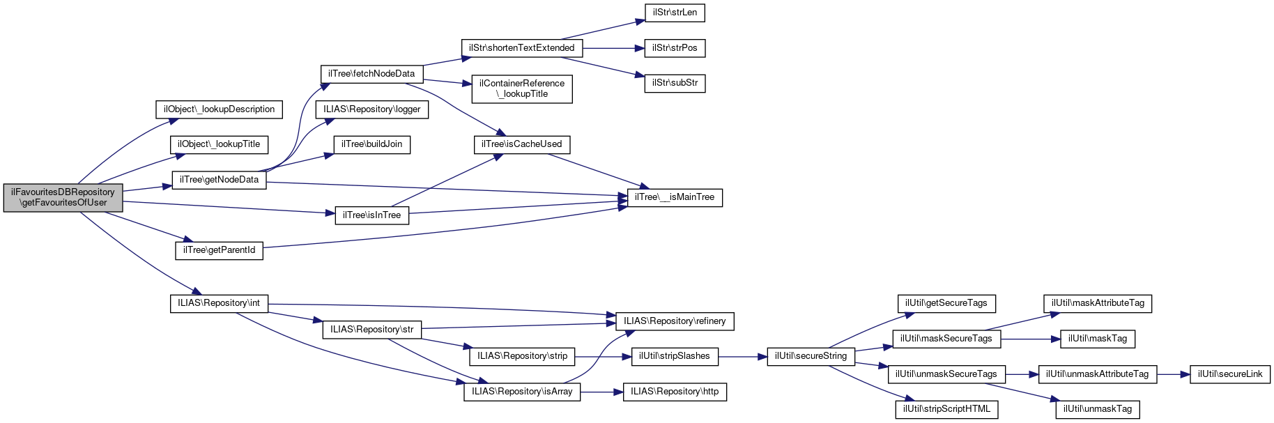 Here is the call graph for this function:| ilFavouritesDBRepository::getFavouritesOfUser | ( | int | $user_id, |